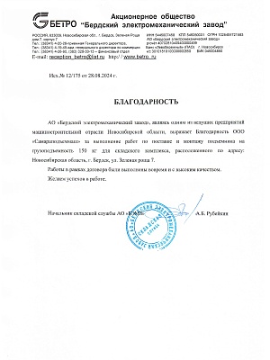 • Сертификаты качества по ГОСТ Р на все изделие в целом, а также на использованные материалы и комплектующие.